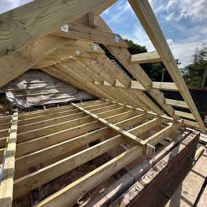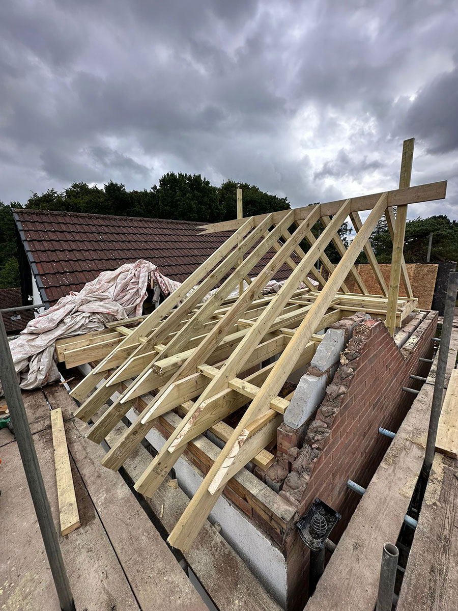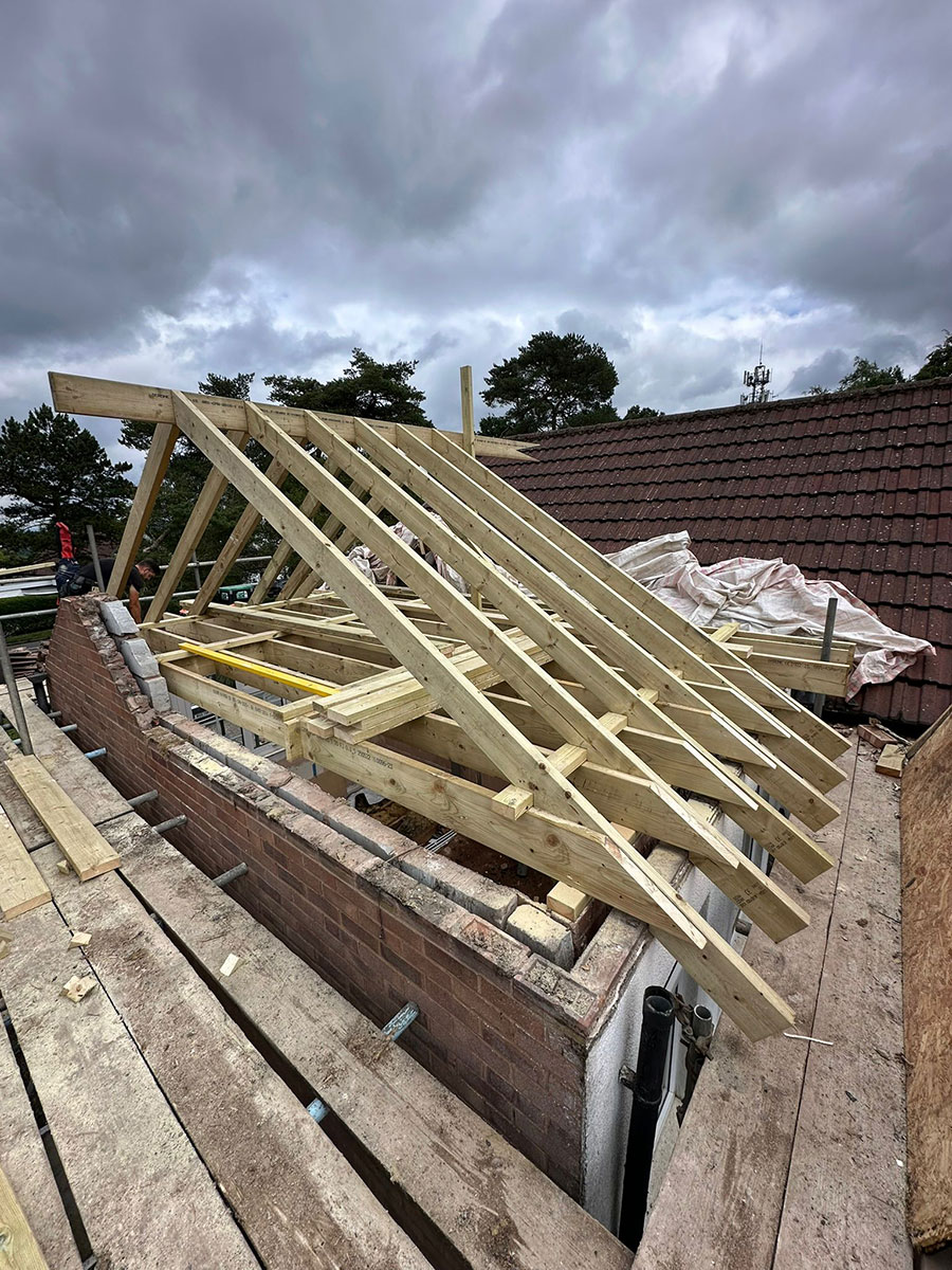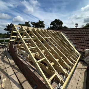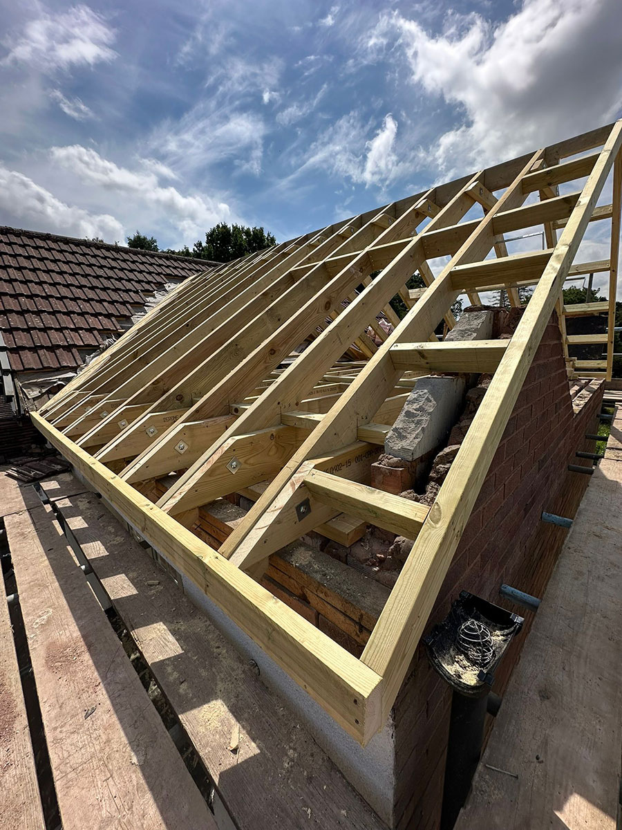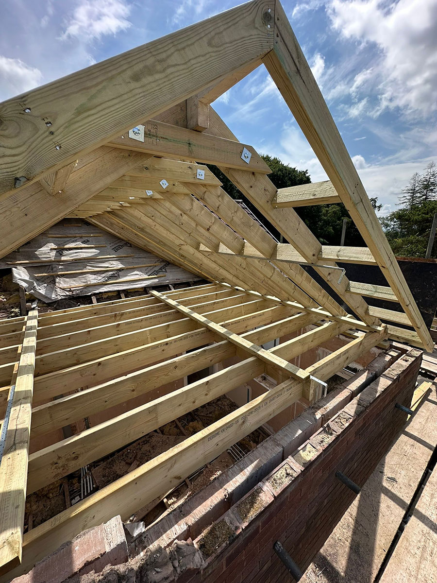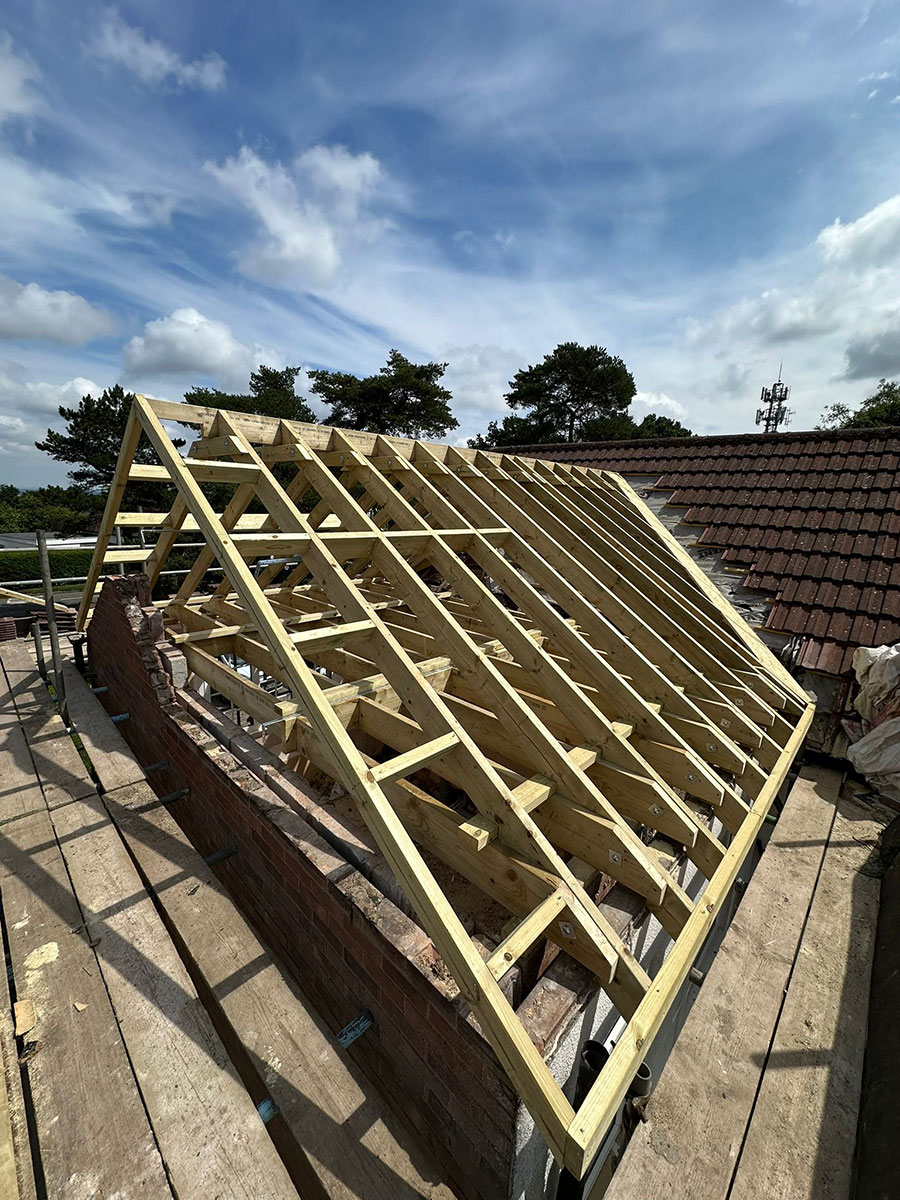 This roofing project in the Lickey Hills focused on delivering a bespoke roofing design using traditional cut and pitch carpentry techniques. Rather than a standard off-the-shelf roof structure, the emphasis here was on creating a timber framework that was carefully tailored to the property’s proportions, roofline, and setting. Every element was planned and crafted with precision to achieve a strong, well-fitted structure.