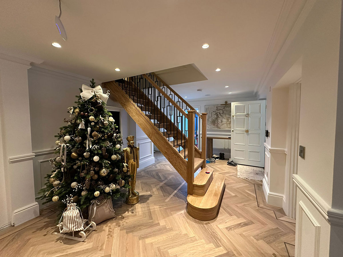 The combination of solid oak and black metal rectangular detailing delivers a clean, contemporary finish that stands out as a central feature of the home. Every element was carefully measured, crafted and installed to ensure both visual impact and long-lasting quality. This staircase transformation highlights Damson Carpentry’s experience in bespoke staircase design and installation across Shirley, Solihull and surrounding areas.