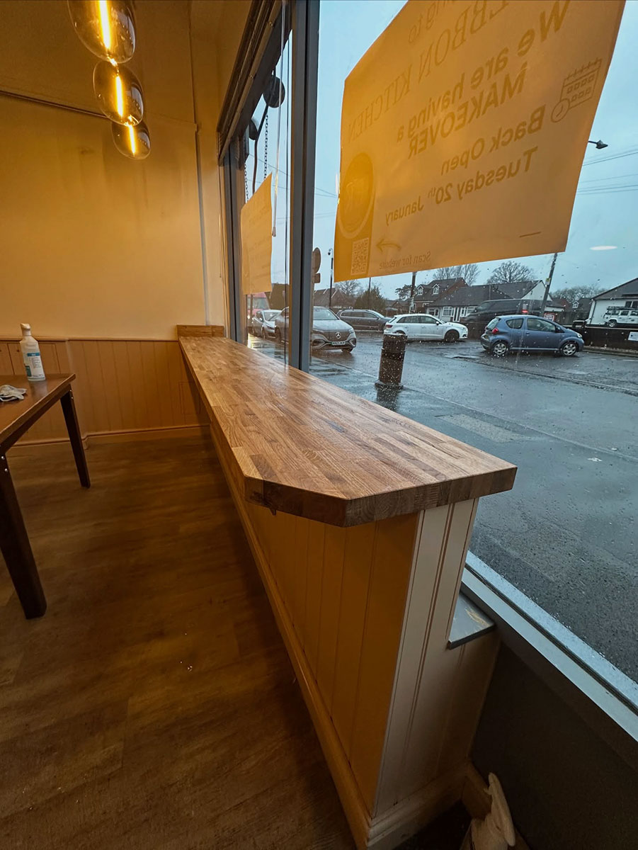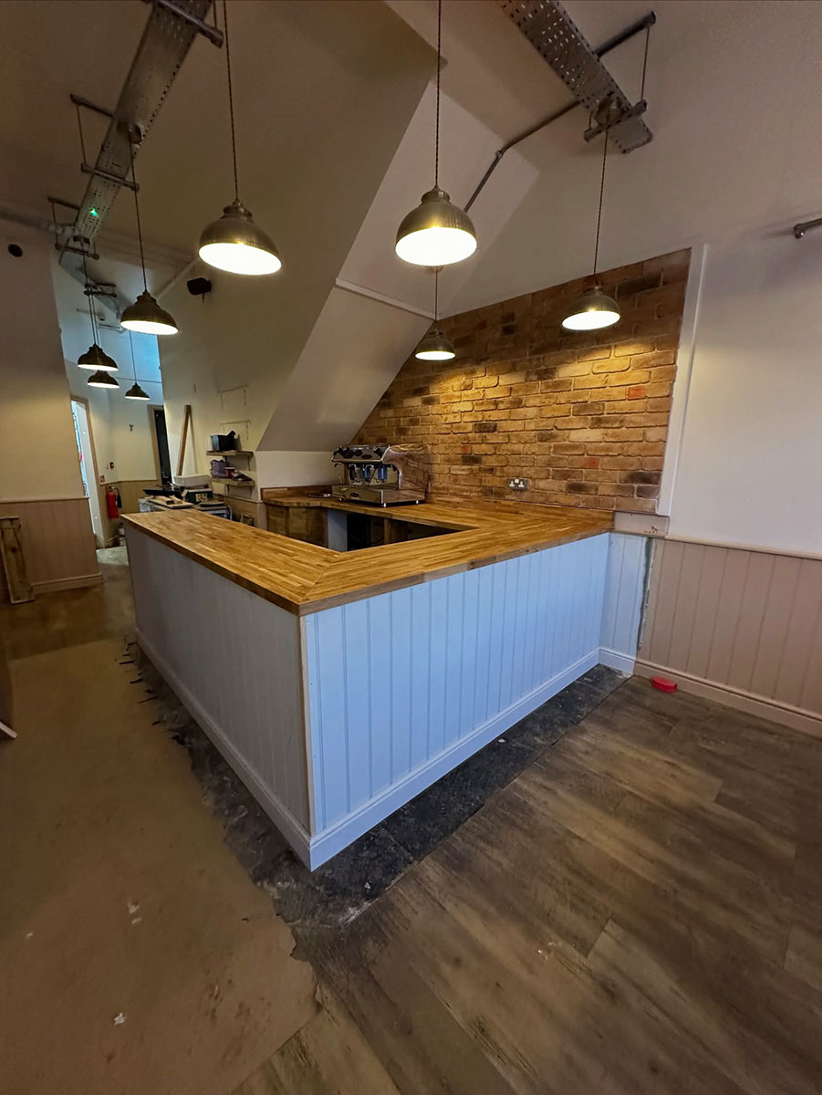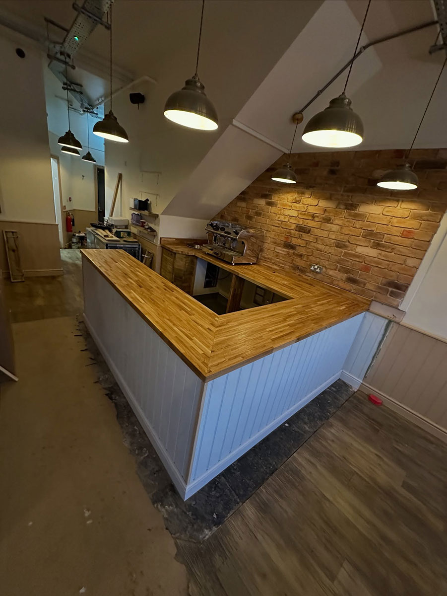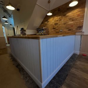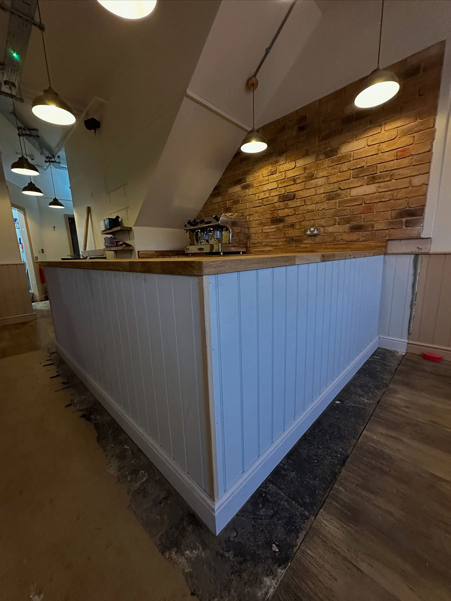 We began by stripping back all the existing units and worktops, then carefully resized and rebuilt each unit to make the kitchen more efficient for day-to-day operations. The units were enhanced with new cladded panelling and skirting. To complete the transformation, we fitted solid oak worktops, adding warmth, durability, and a touch of natural elegance to the space.