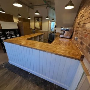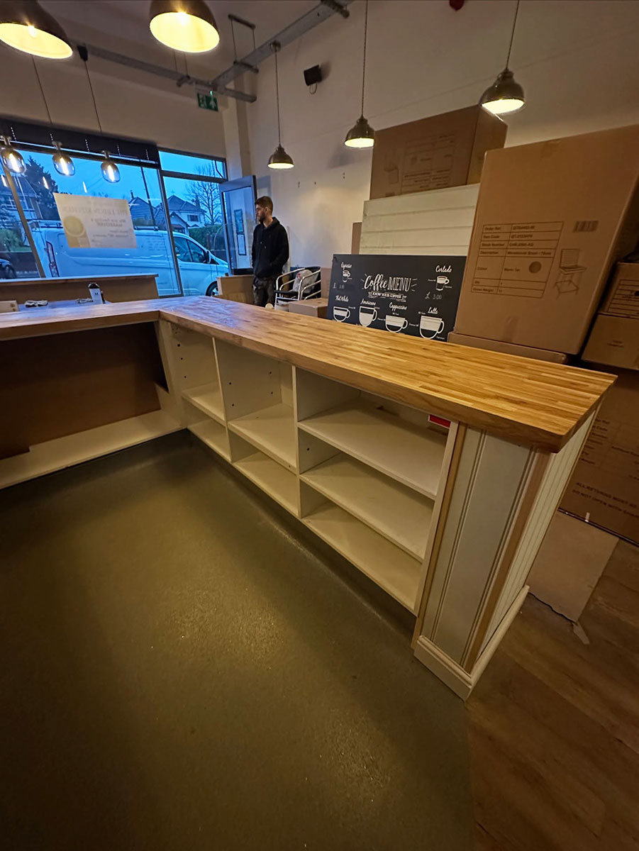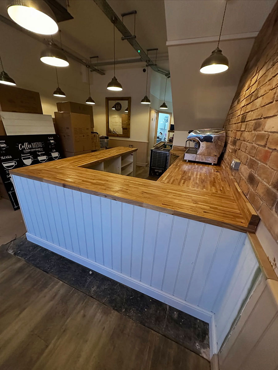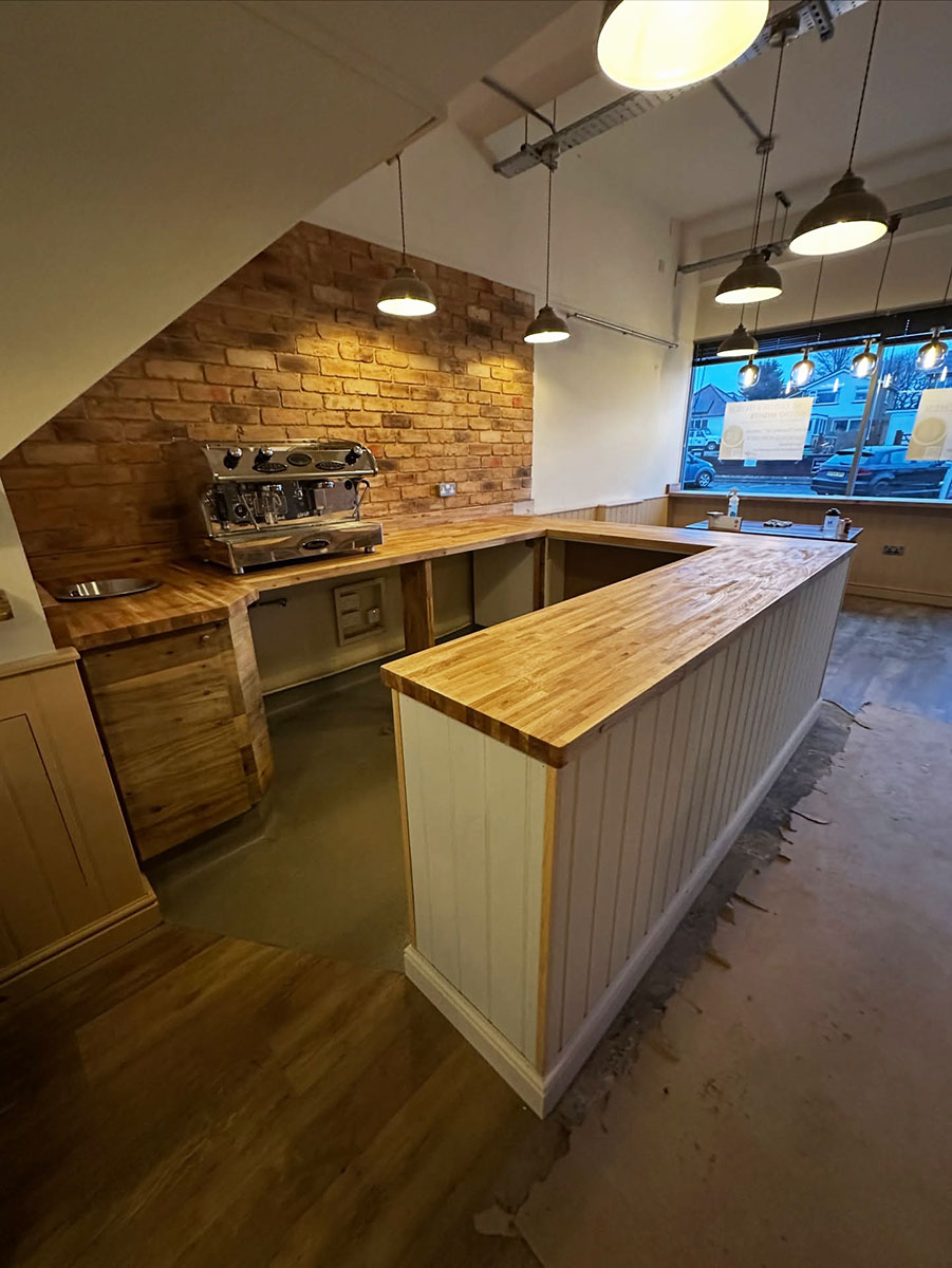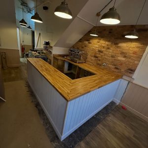 We began by stripping back all the existing units and worktops, then carefully resized and rebuilt each unit to make the kitchen more efficient for day-to-day operations. The units were enhanced with new cladded panelling and skirting. To complete the transformation, we fitted solid oak worktops, adding warmth, durability, and a touch of natural elegance to the space.